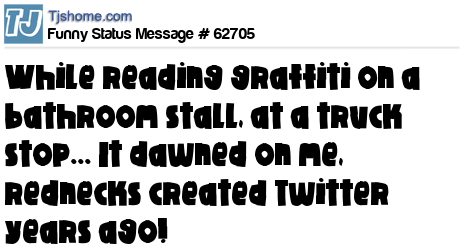 X While reading graffiti on a bathroom stall, at a truck stop... It dawned on me, rednecks created Twitter years ago!