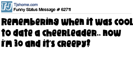 X was remembering when it was cool to date a cheerleader.. now i`m 30 and it`s creepy?