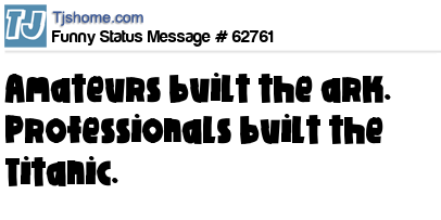 - # 44221 Never be afraid to try something new. Remember: Professionals built the Titanic; Amateurs built the Ark.