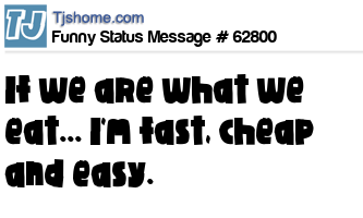 - # 12847 If you are what you eat, then I'm fast, cheap, and easy.