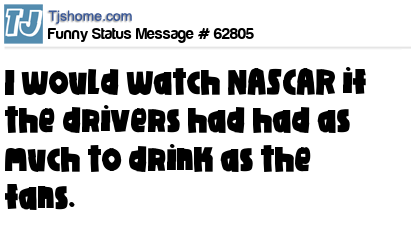 - # 103127 If you ask me, NASCAR would be much more entertaining if the drivers had had as much to drink as the fans.