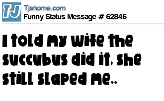 - # 103558 They say to stay away from a girl who is a succubus.... not me, I just changed my name to Bus.