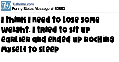 - # 82419 I think I need to lose some weight. I tried to sit up earlier and ended up rocking myself to sleep. :(