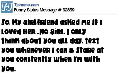 X is So, My girlfriend asked me if I loved Her,..No girl, I only think about you all day, text you whenever I can & Stare at you constently when i'm with you.
