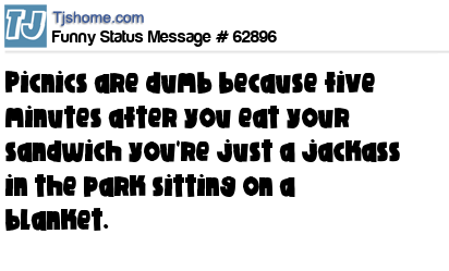 X Picnics are dumb because five minutes after you eat your sandwich you're just a jackass in the park sitting on a blanket.