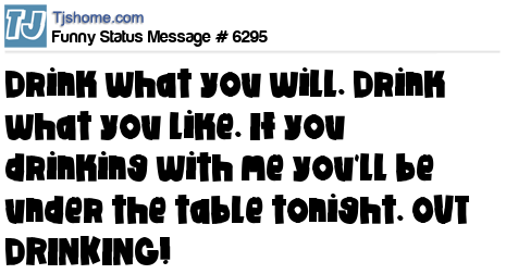 X says Drink what you will. Drink what you like. If you drinking with me you'll be under the table tonight. OUT DRINKING!