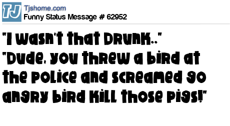 - # 86760 "I wasnt that drunk.." ... "bro you threw my parrot into a wall screaming "ANGRY BIRDS! " @___@
