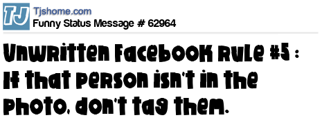 X says Unwritten Facebook rule #5 : If that person isn't in the photo, don't tag them.