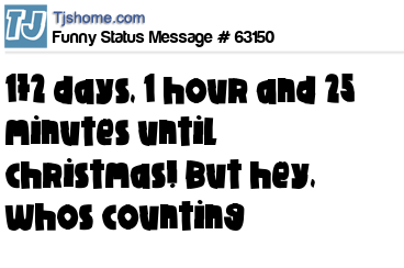 X 172 days, 1 hour and 25 minutes until christmas! But hey, whos counting
