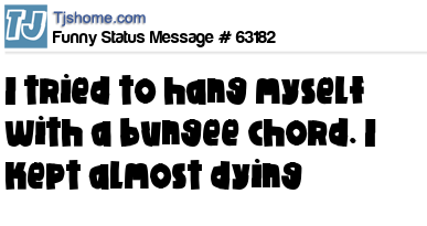 - # 110273 Last night I tried to hang myself with about 20 bungee cords... If you're wondering,,, I almost died a bunch of times