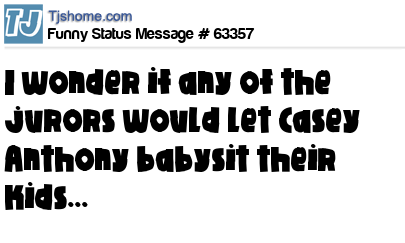 - # 63091 I think Casey Anthony should be the new baby sitter for all the jurors' kids..