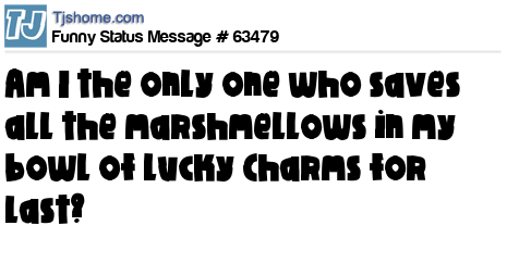 X says Am I the only one who saves all the marshmellows in my bowl of Lucky Charms for last?