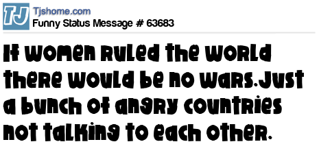 - # 36923 if women ruled the world there would be no wars. just a bunch of jealous countries not talking to each other.