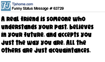 X says A real friend is someone who understands your past, believes in your future, and accepts you just the way you are. All the others are just acquaintances.