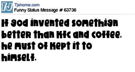 X is if god invented somethign better than kfc and coffee, he must of kept it to himself.