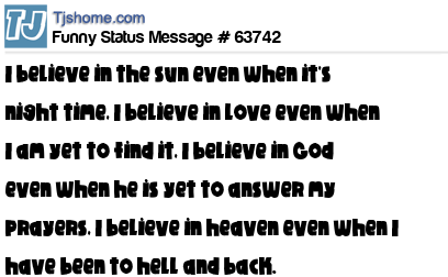 X says I believe in the sun even when it's night time, I believe in love even when I am yet to find it, I believe in God even when he is yet to answer my prayers, I believe in heaven even when I have been to hell and back.