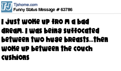 X is I just woke up fro m a bad dream. I was being suffocated between two huge breasts...then woke up between the couch cushions