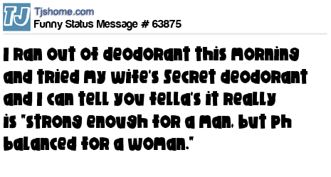 - # 124948 I ran out of deodorant this morning, so I spritzed on some windex..... Now birds keep crashing into my armpits