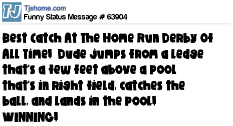 X Best Catch At The Home Run Derby Of All Time! Dude jumps from a ledge that's a few feet above a pool that's in right field, catches the ball, and lands in the pool! WINNING!