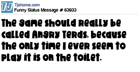 X The game should really be called Angry Terds, because the only time I ever seem to play it is on the toilet.