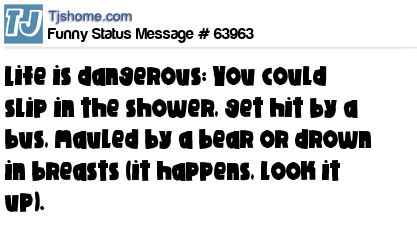X Life is dangerous: You could slip in the shower, get hit by a bus, mauled by a bear or drown in breasts (it happens, look it up).