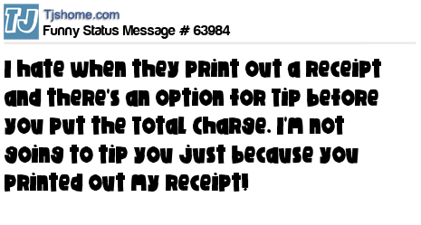 X I hate when they print out a receipt and there's an option for Tip before you put the Total Charge. I'm not going to tip you just because you printed out my receipt!