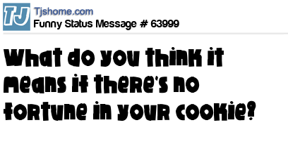 - # 26785 pretty sure that if fortune telling was real every fortune in every fortune cookie would read "You are about to eat a stale cookie, boo-yah!"