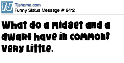 - # 79723 I rear ended a midget with my car the other day. So he go out and looked at me and said, "Im not happy," so I asked, "So then what Dwarf are you?