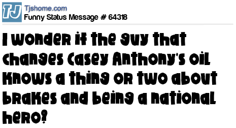 X is I wonder if the guy that changes Casey Anthony's oil knows a thing or two about brakes and being a national hero?
