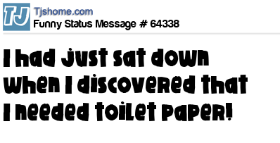 - # 113947 when I run out of toilet paper i'll awkwardly sit there and hope the toilet paper gods on his way
