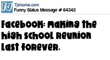 - # 107184 What's the point of a high school reunion? I have Facebook. I already know you got Fat