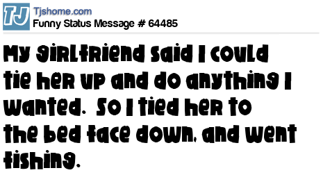 X says my girlfriend said I could tie her up and do anything I wanted. So I tied her to the bed face down, and went fishing.