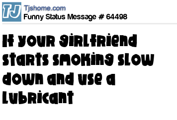- # 166448 What should you do if your girlfriend starts smoking? Slow down and use a lubricant.