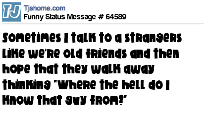 X Sometimes I talk to a strangers like we're old friends and then hope that they walk away thinking "Where the hell do I know that guy from?"