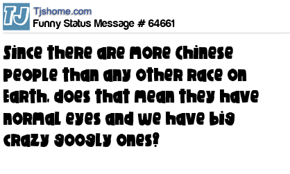 X Since there are more Chinese people than any other race on Earth, does that mean they have normal eyes and we have big crazy googly ones?