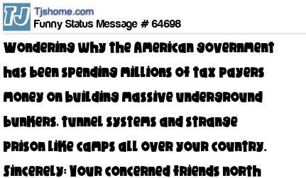 X is Wondering why the American government has been spending millions of tax payers money on building massive underground bunkers, tunnel systems and strange prison like camps all over your country. Sincerely: Your concerned friends north of the border