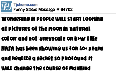 X is Wondering if people will start looking at pictures of the moon in 'natural color' and not 'greyscale or B+W' like NASA has been showing us for 50+ years and realize a secret so profound, it will change the course of mankind forever...
