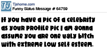 X If you have a pic of a celebrity as your profile pic I am gonna assume you are one ugly b!tch with extreme low self esteem.