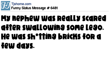 X My nephew was really scared after swallowing some lego. He was sh*tting bricks for a few days.