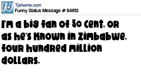 X I'm a big fan of 50 Cent, or as he's known in Zimbabwe, four hundred million dollars.