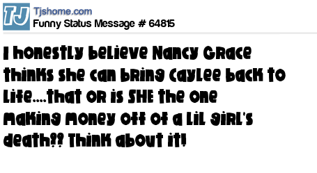 X is I honestly believe Nancy Grace thinks she can bring Caylee back to life....that or is SHE the one making money off of a lil girl's death?? Think about it!