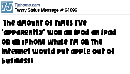 X The amount of times I've "apparently" won an ipod an ipad or an iphone while I'm on the internet would put apple out of business!