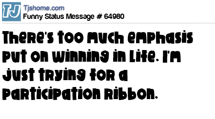 X There's too much emphasis put on winning in life. I'm just trying for a participation ribbon.
