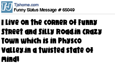 X is I live on the corner of Funny Street and Silly Road,in Crazy Town which is in Physco Valley,in a twisted state of mind!