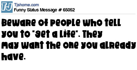 X is Beware of people who tell you to "get a life". They may want the one you already have.