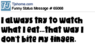 X says I always try to watch what I eat...that way I don't bite my finger.