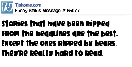 X says Stories that have been ripped from the headlines are the best. Except the ones ripped by bears. They're really hard to read.