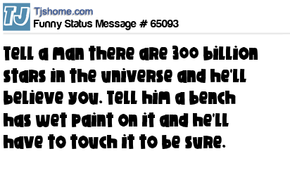 X says Tell a man there are 300 billion stars in the universe and he'll believe you. Tell him a bench has wet paint on it and he'll have to touch it to be sure.