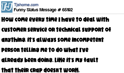 X says How come every time I have to deal with customer service or technical support of anything, it's always some incompetent person telling me to do what I've already been doing. Like it's my fault that their crap doesn't work.