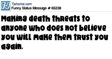 X says Making death threats to anyone who does not believe you will make them trust you again.